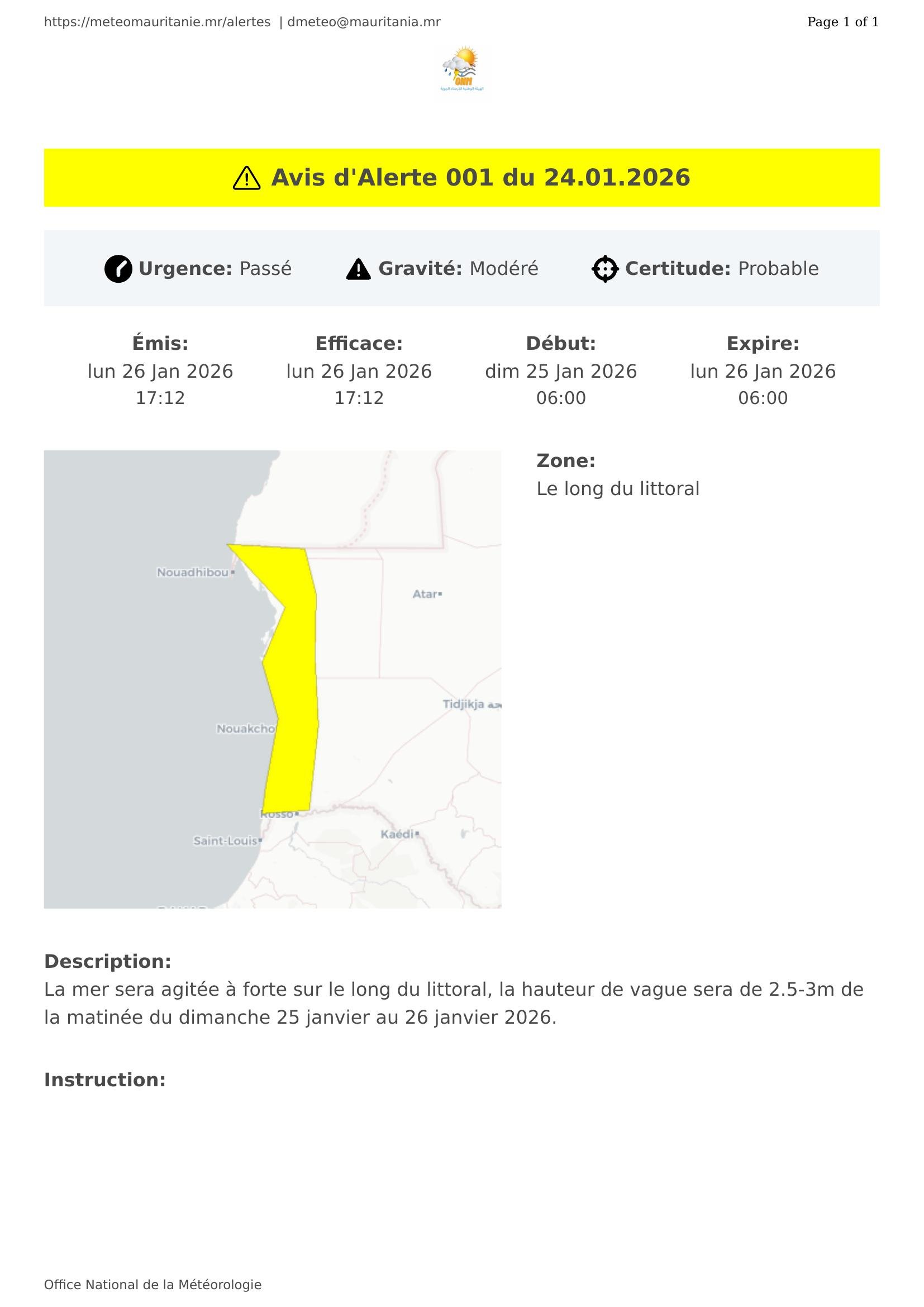Avis d'Alerte 001 du 24.01.2026