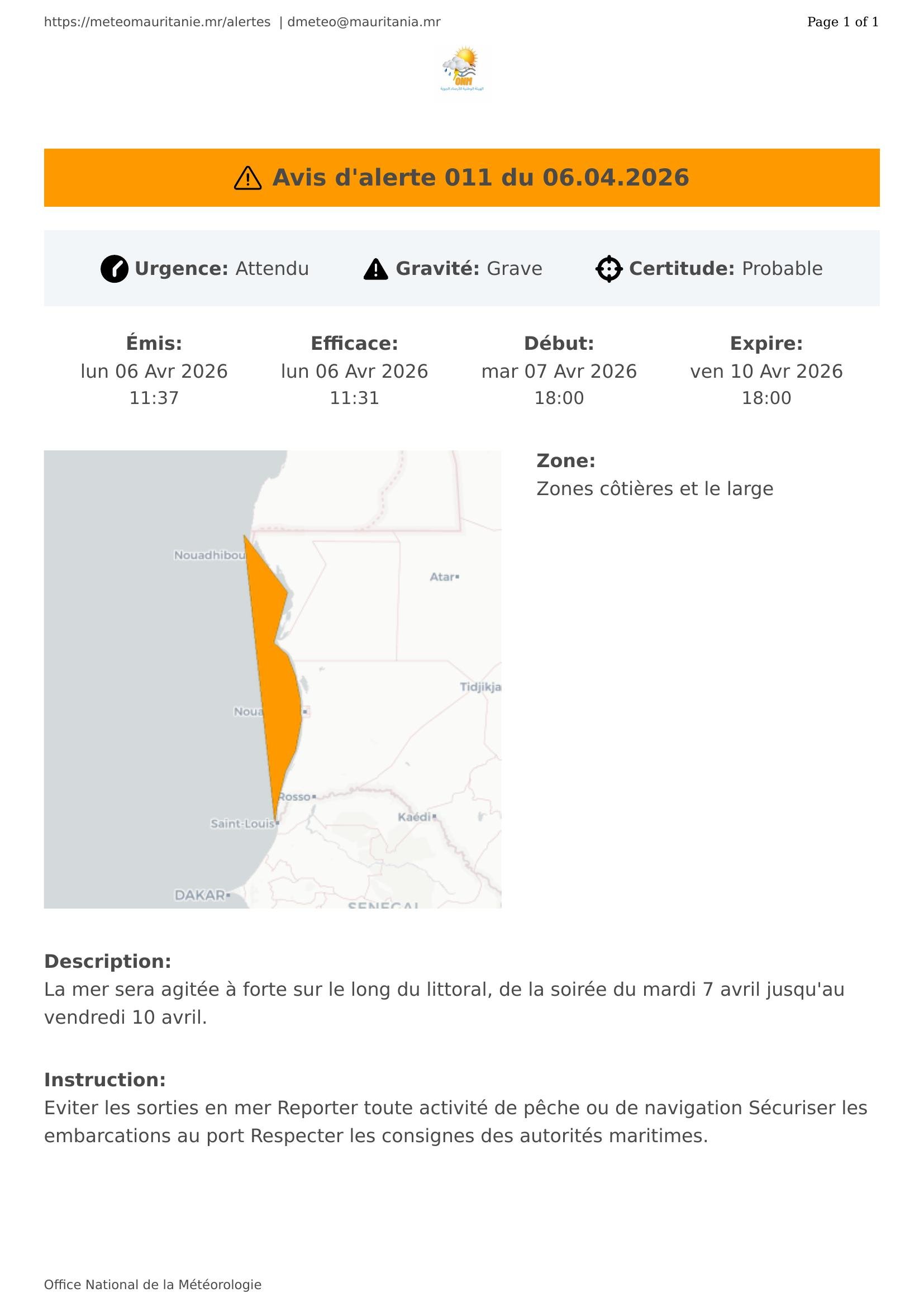 La mer sera agitée à forte sur le long du littoral, de la soirée du mardi 7 avril jusqu'au vendredi 10 avril.